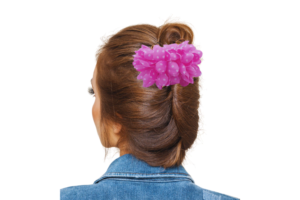 Imagina a una mujer segura de sí misma, lista para conquistar el mundo con su elegancia y encanto. Estos broches vienen en una gama de colores vibrantes y atractivos: rosa, rojo, negro, verde, violeta y blanco, todos con lunares blancos o negros, lo que permite una versatilidad única para adaptarse a diferentes estilos y preferencias.