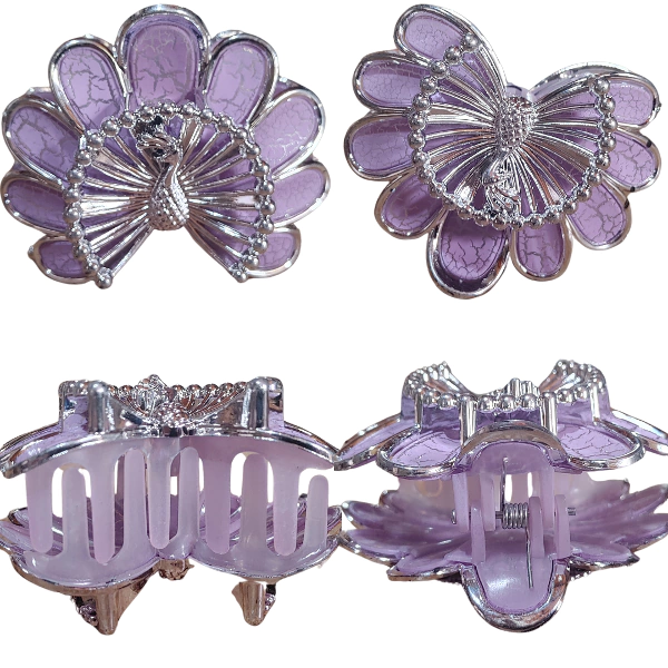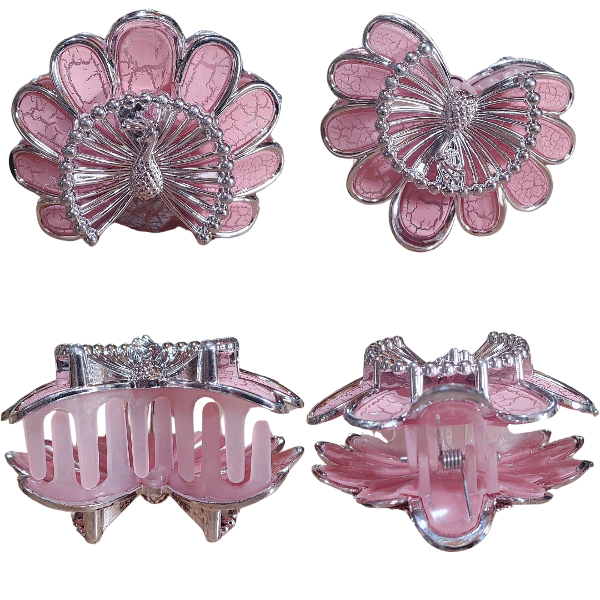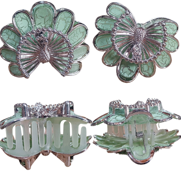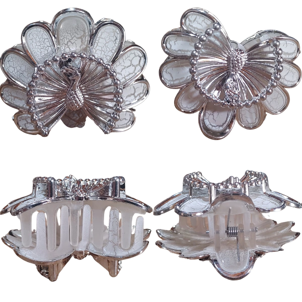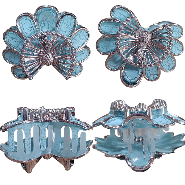 Hoy les traemos un accesorio que hará que tu look brille más que una estrella en la noche: ¡el Broche para el cabello de la mujer modelo Pavo Real en Flor Plateado! Este no es solo un broche, es un artefacto mágico que transformará tu peinado de "meh" a "¡wow!".