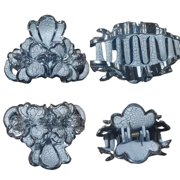 ¿Listas para brillar como nunca antes? ¡Realza tu estilo con elegancia y brillo! Este exclusivo broche para el cabello es la joya que tu colección estaba esperando. Con el modelo Flores Agrietadas con strass en plata, no solo asegurarás tu peinado, sino que también atraerás todas las miradas. 🌟