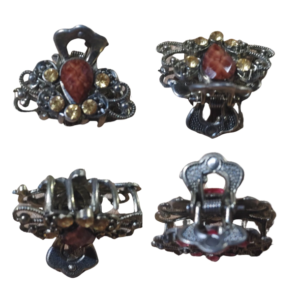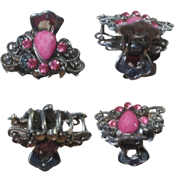 Imagina adornar tu cabello con estos broches de metal en color cobre, resplandecientes con 5 deslumbrantes gemas a cada lado. Con una selección de 5 cautivadores colores - rojo, turquesa, marrón, rosa y violeta - encontrarás el complemento perfecto para cada atuendo y ocasión.