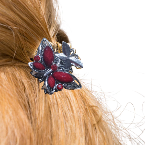 Imagina el brillo y la elegancia que agregarás a tu peinado con estos exquisitos broches. Fabricados con metal de acero de la más alta calidad, estos broches están diseñados en forma de hermosas mariposas que deslumbran con sus alas adornadas con piedras de strass en un intenso color rojo, o en una variedad de colores como turquesa y bordo. ¡Tus amigas se preguntarán si te has escapado de una pasarela!