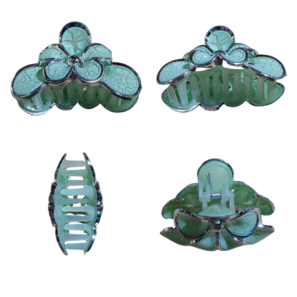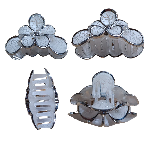 Cada broche presenta una delicada flor agrietada con detalles metálicos que realzan su belleza. Su diseño versátil se adapta a una variedad de estilos y peinados, desde recogidos informales hasta elegantes trenzas.