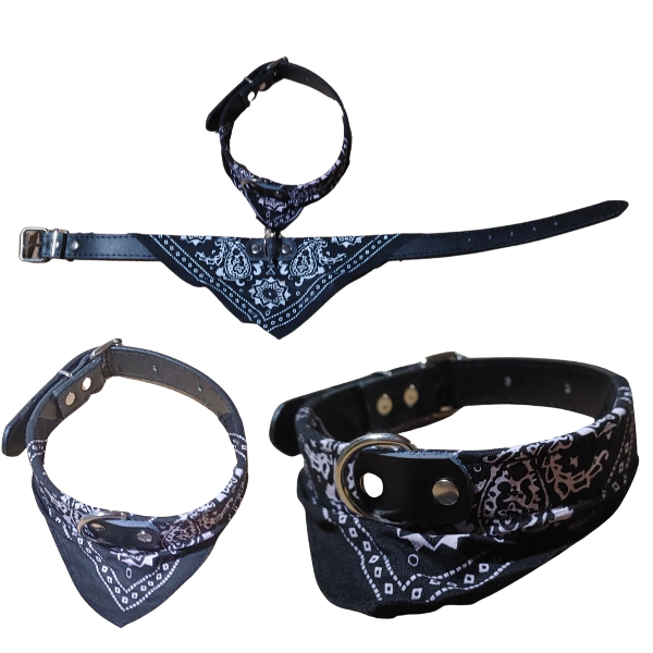 Imagina a tu fiel compañero luciendo un elegante pañuelo en tonos rojo, azul, negro o verde, un detalle que realza su personalidad y añade un toque de distinción a sus paseos diarios. Este collar, confeccionado en eco cuero, tiene un largo de 45 cm y un ancho de 2 cm, garantizando comodidad y durabilidad.