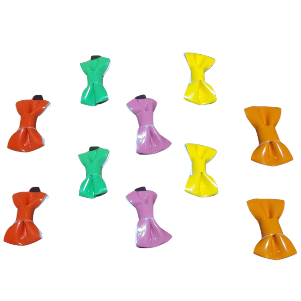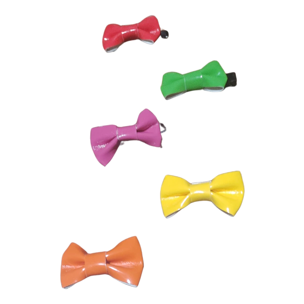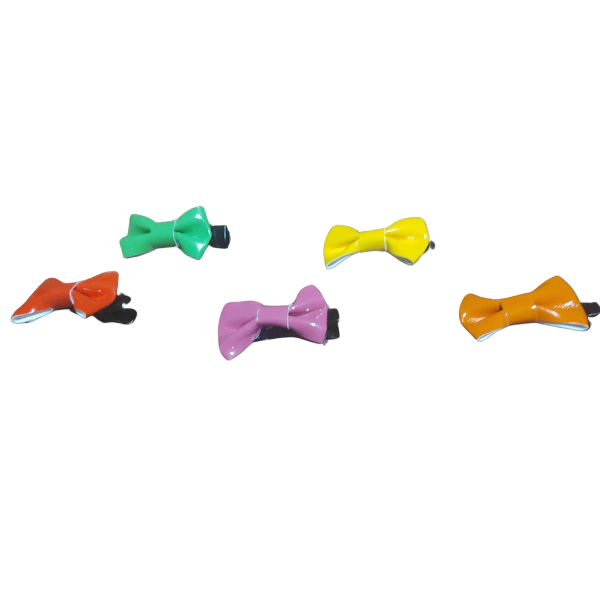 Variedad de Colores: Cada par de moños viene en cinco colores diferentes: Naranja, Amarillo, Violeta, Verde y Rojo. ¡Así tendrán opciones para cada ocasión, desde el día de la madre hasta el cumpleaños de la abuela!