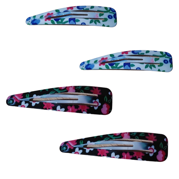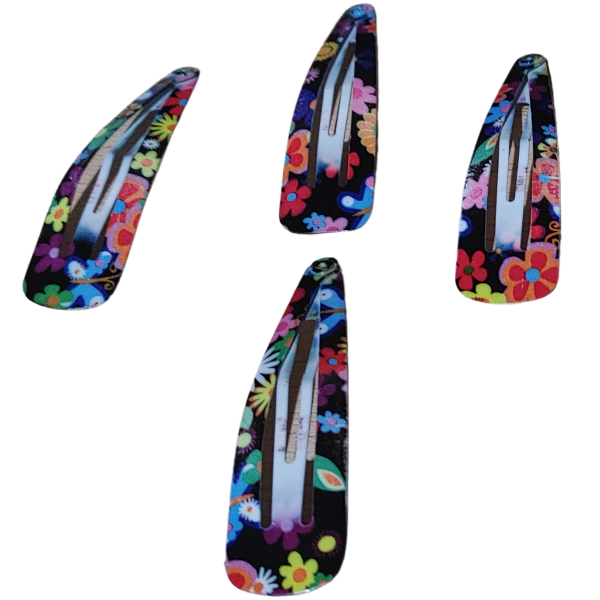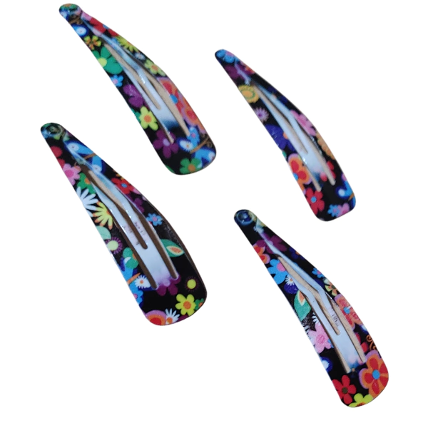 ¡Hola, reinas del estilo! 👑 ¿Están listas para deslumbrar con su cabello? Les traigo algo que hará que sus peinados sean la envidia de todas. ¡Presentamos las Hebillas De Pelo Tic Tac Grandes Floreadas Fondo Negro en un fabuloso pack de 4! 🌼✨