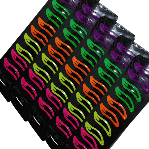 Imagina darle un toque vibrante y fresco a tu look diario con estas hebillas en cinco colores llamativos: rosa, verde fluo, naranja, verde y violeta. Es como tener un arcoíris en tu peinado, pero sin mojarte.