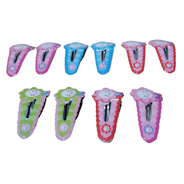 ¿Te imaginas la carita de tu pequeña cuando vea este adorable pack de hebillas? ¡Es como un desfile de sonrisas en su cabeza! Presentamos nuestro pack de 10 unidades de hebillas para niñas, cada una con un encantador diseño de flor con sonrisa. ¡Una explosión de alegría para cualquier peinado!