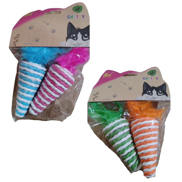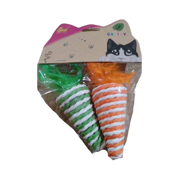 Juguete Para Gatos Zanahoria con Hilo Sisal y Plumita - Pack x2 Unidades