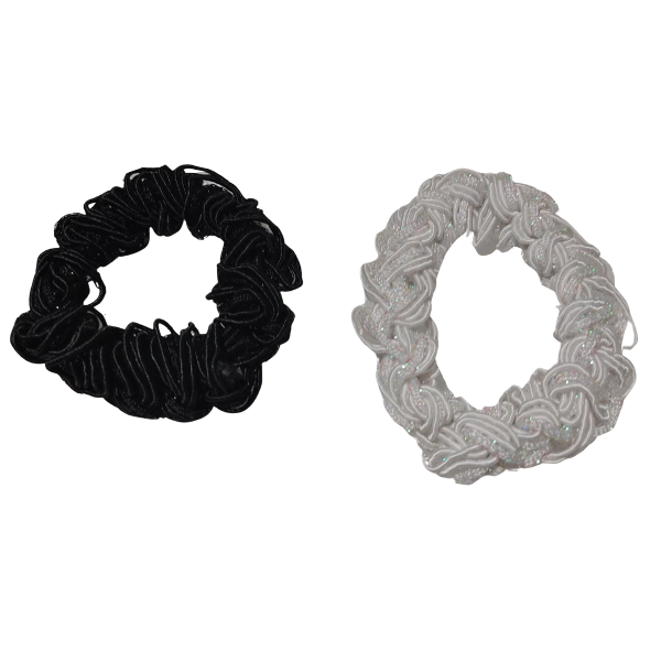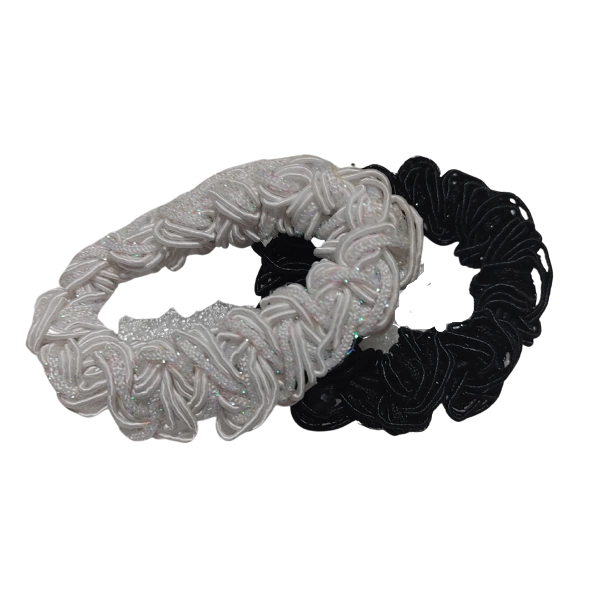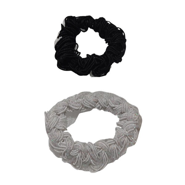 ¡Dale un giro a tu look con nuestras scrunchies gomita para pelo de poliéster entrelazado con brillitos! ✨ Disponibles en elegantes colores blanco o negro, estas coletas no solo sujetan tu cabello, sino que también añaden un toque de brillo y estilo que hará que todos se giren a mirarte.